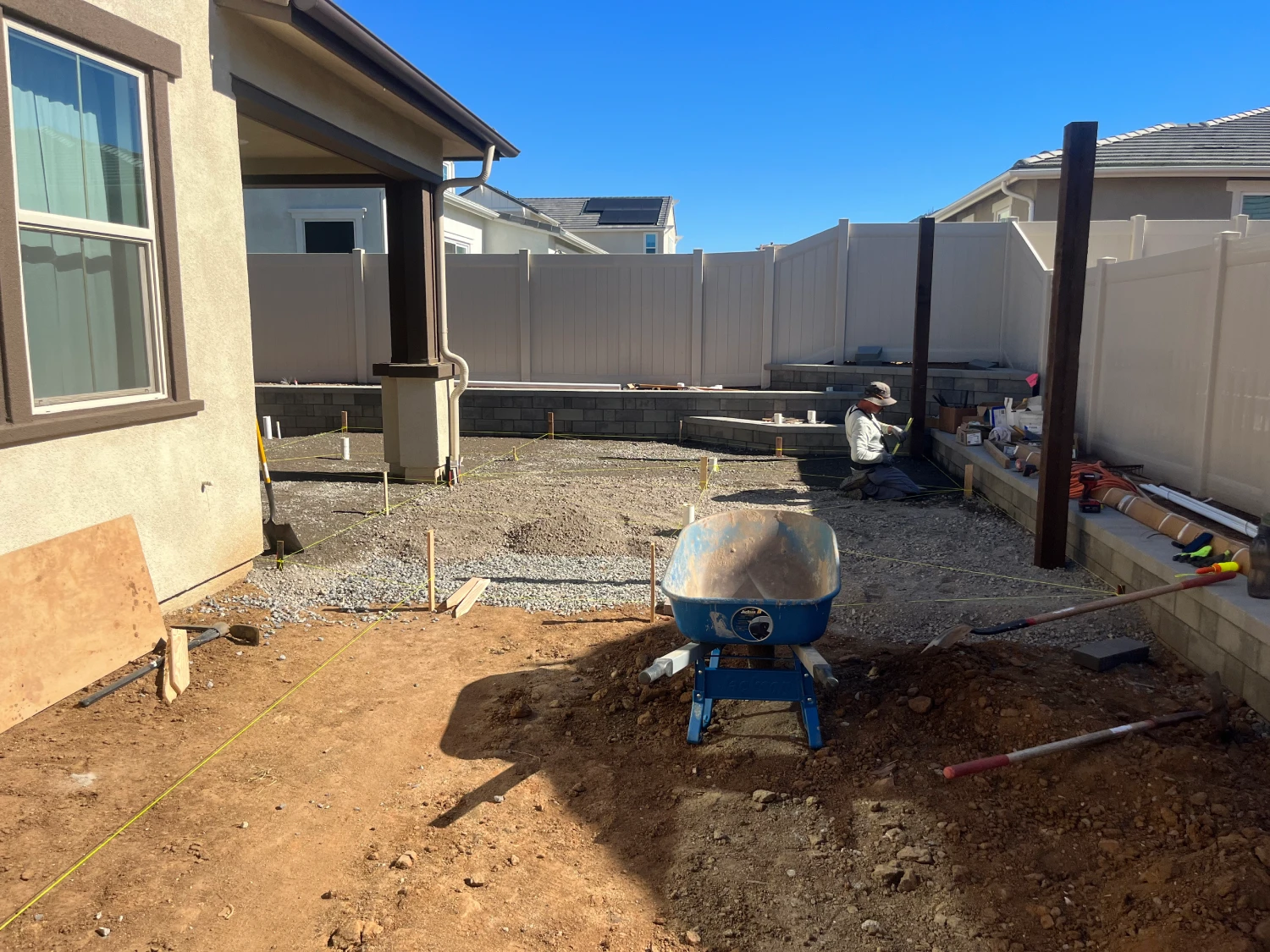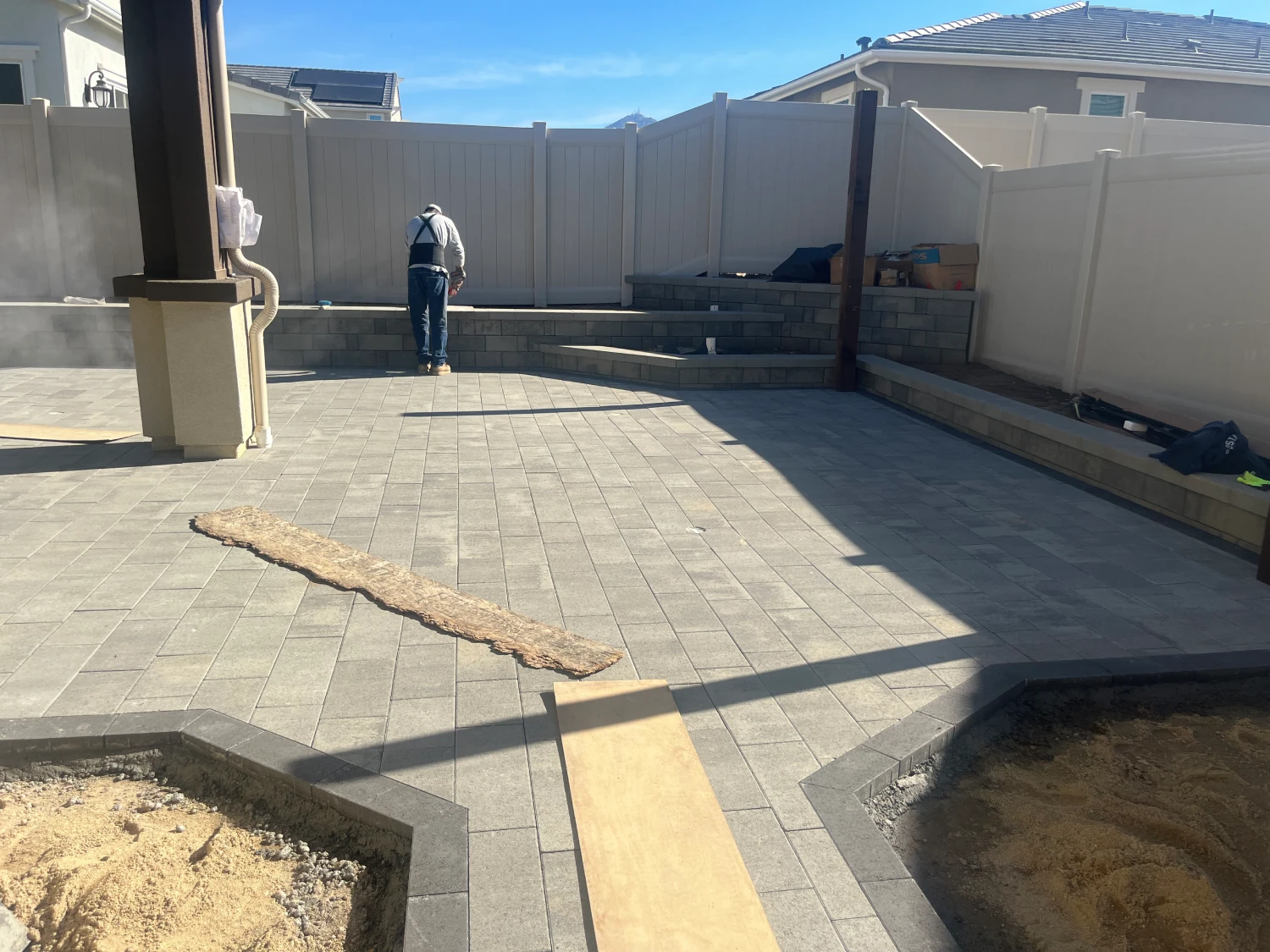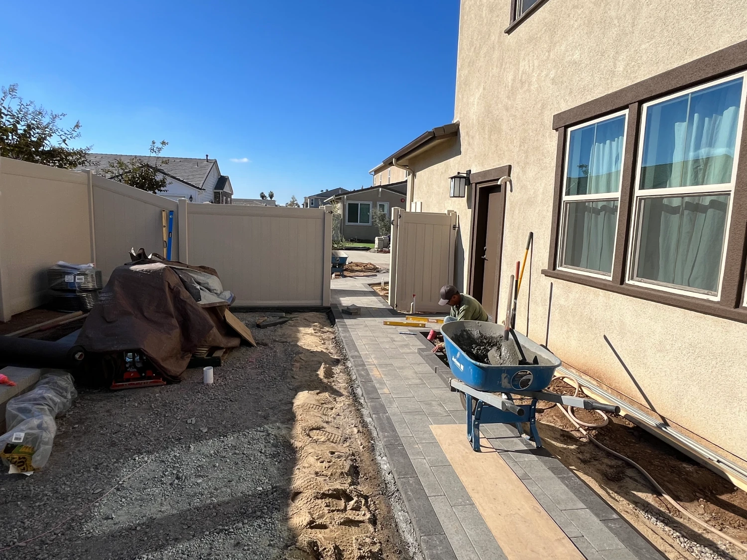 Finished paver patio path showcasing early progress in the Poway outdoor project
